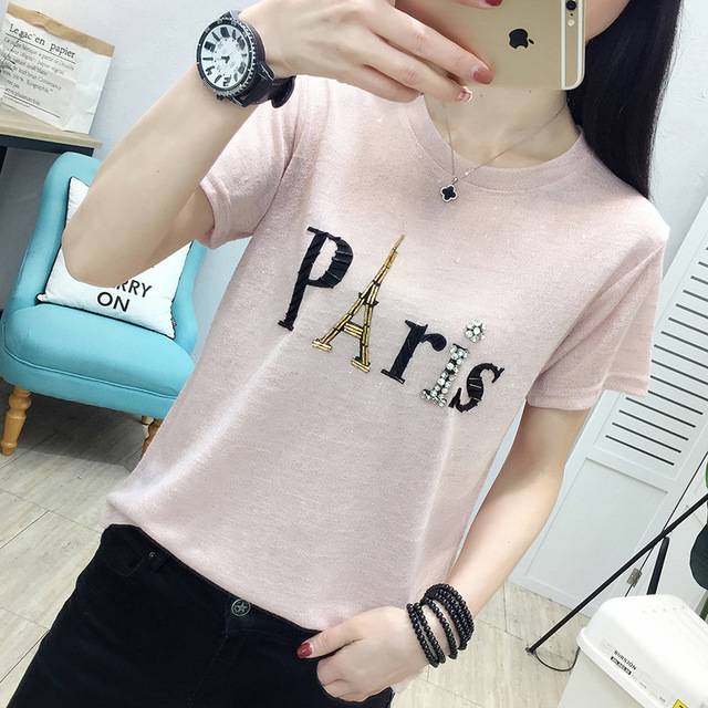亮丝T恤闪光丝上衣女韩版套头针织衫短袖2019年春夏新款冰丝薄款
