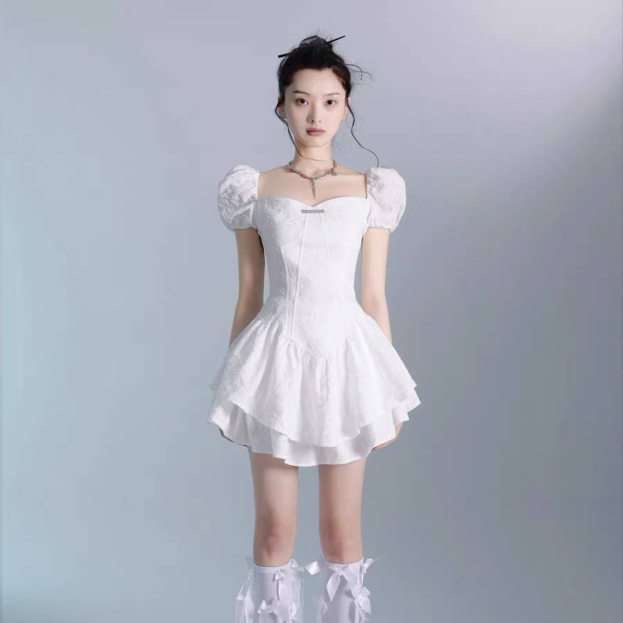 白色茶歇辣妹蕾丝娃娃裙公主蓬蓬连衣裙短裙法式裙子女