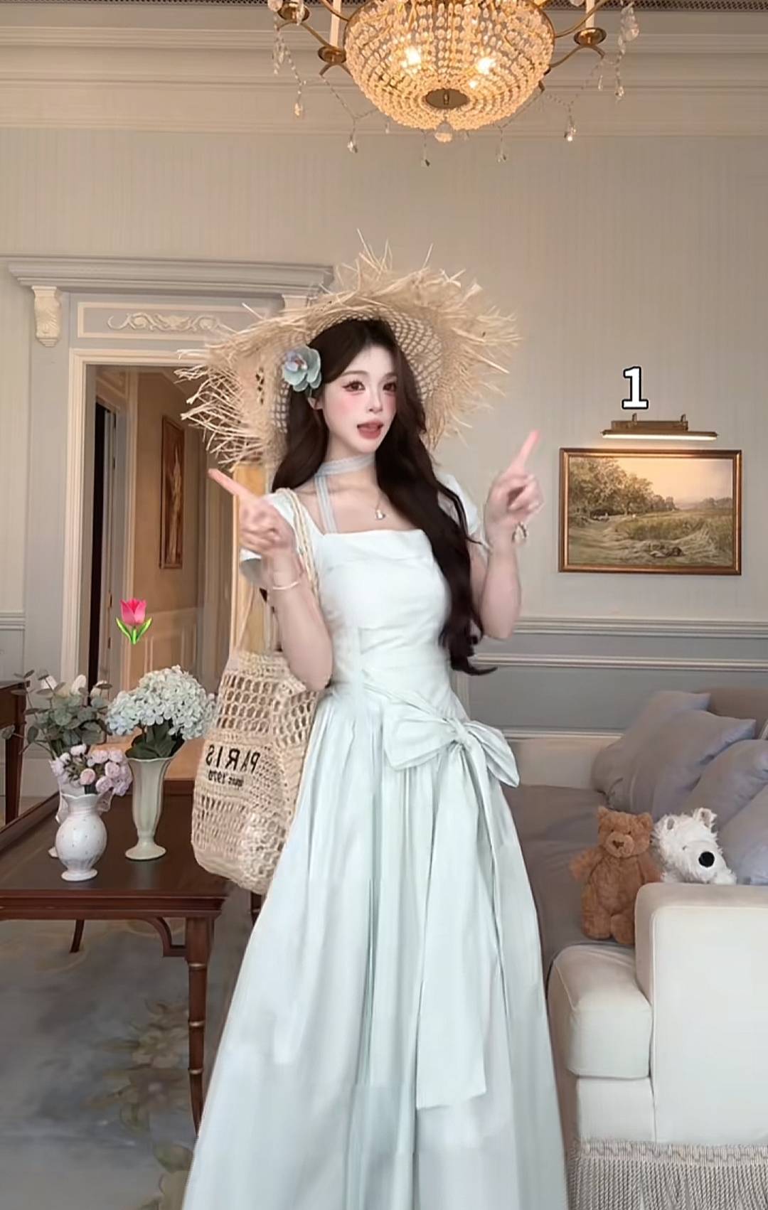 格子吊带裙2019新款chic连衣裙女夏季露肩收腰显瘦裙子