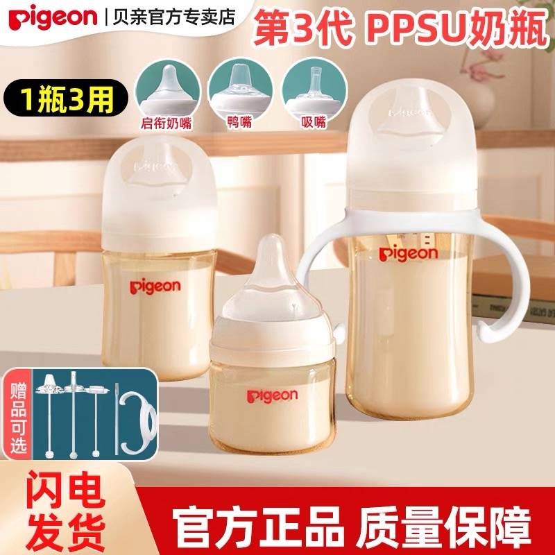 【官方专卖店】贝亲3代婴儿奶瓶防胀气新生儿宽口径PPSU吸管奶瓶