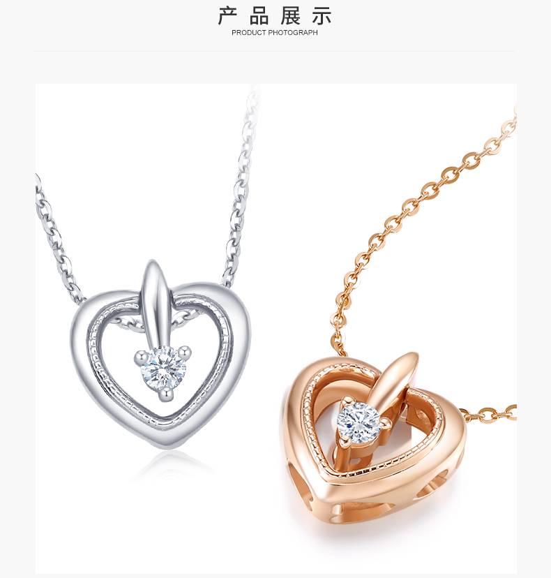 钻石项链女正品18K彩金灵动心形锁骨送女友玫瑰金钻石吊坠