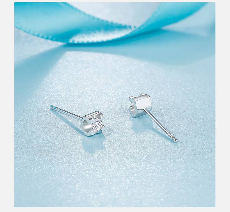 钻石耳钉女正品真钻18K金耳环耳饰彩金AU750方形钻石耳环两件九折