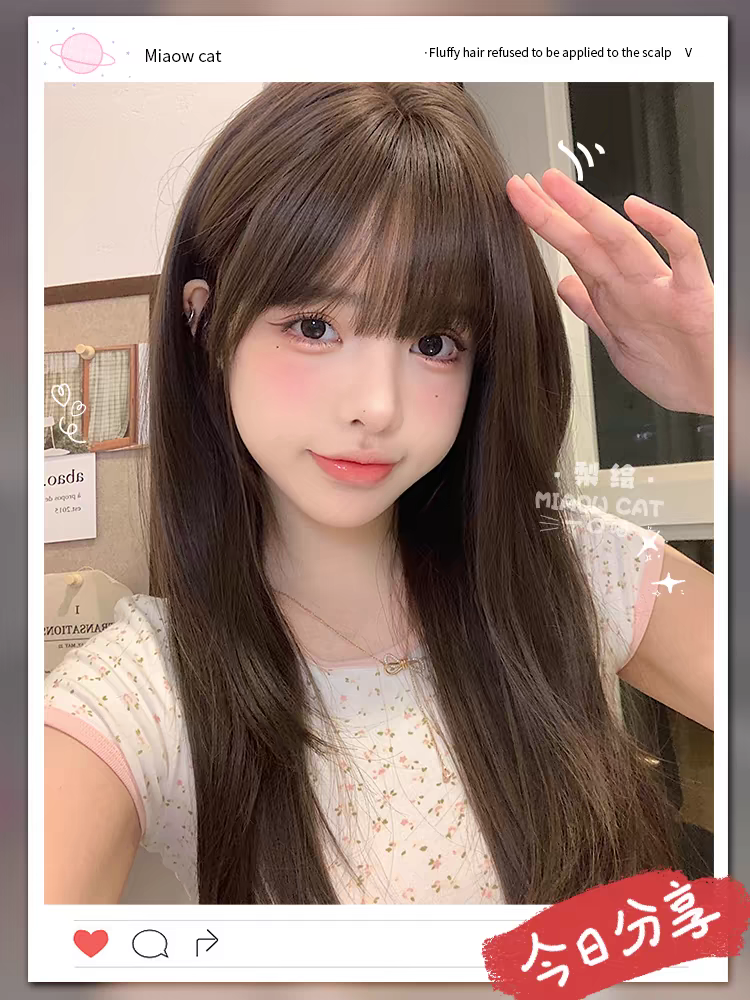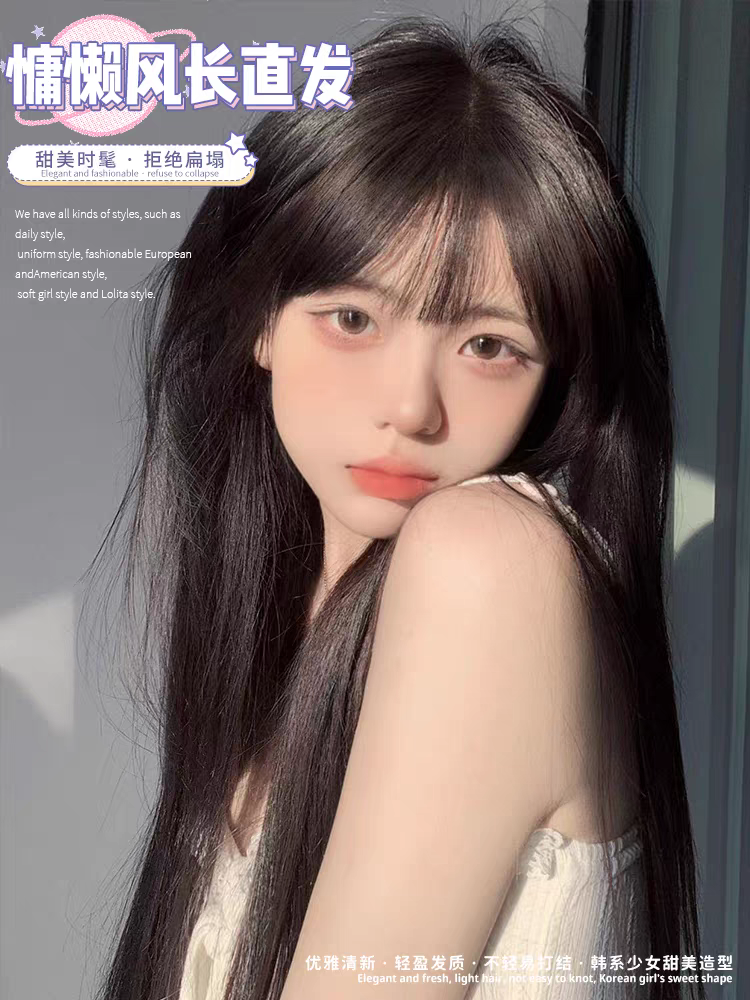 丝悦假发女网红日常长直发齐刘海夏季新款甜美可爱逼真全头套式