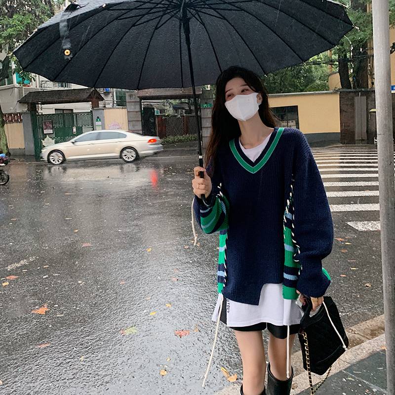 2020春夏季新款百搭长袖韩版宽松V领蝴蝶结衬衫女