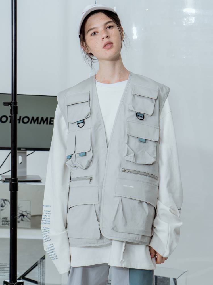 GEONETRY日系潮牌工装战术口袋宽松马甲男士秋季机能无袖背心外套