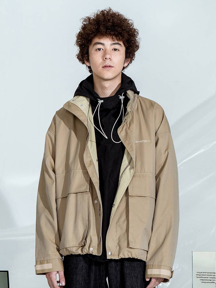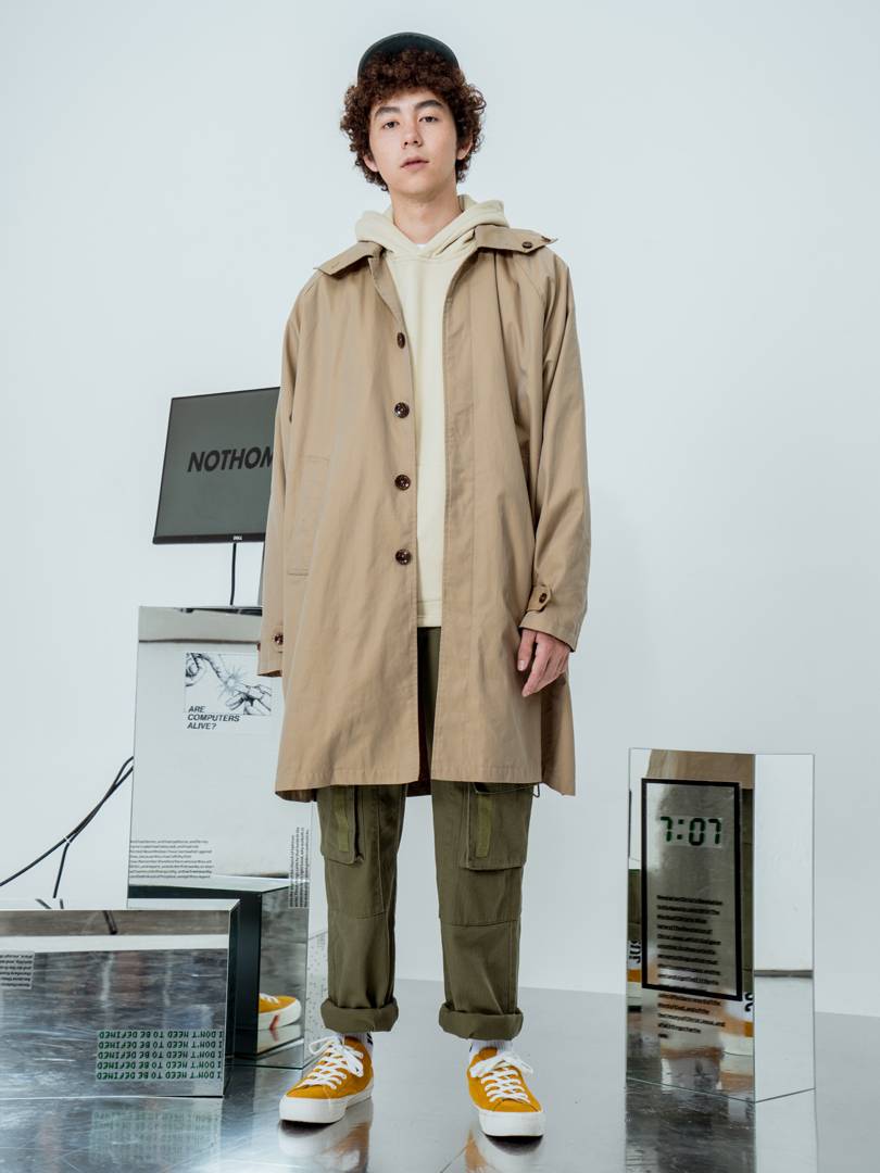 GEOMETRY日系秋季装宽松卡其色连帽风衣男装中长款大廓形休闲外套