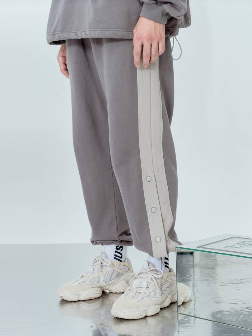 GEOMETRY日系潮牌灰色拼接开叉休闲卫裤男装嘻哈运动束脚长裤