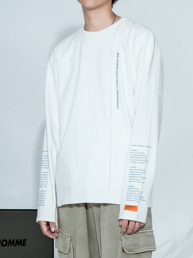 日系潮牌秋季薄款套头宽松卫衣男装字母印花白色长袖T恤