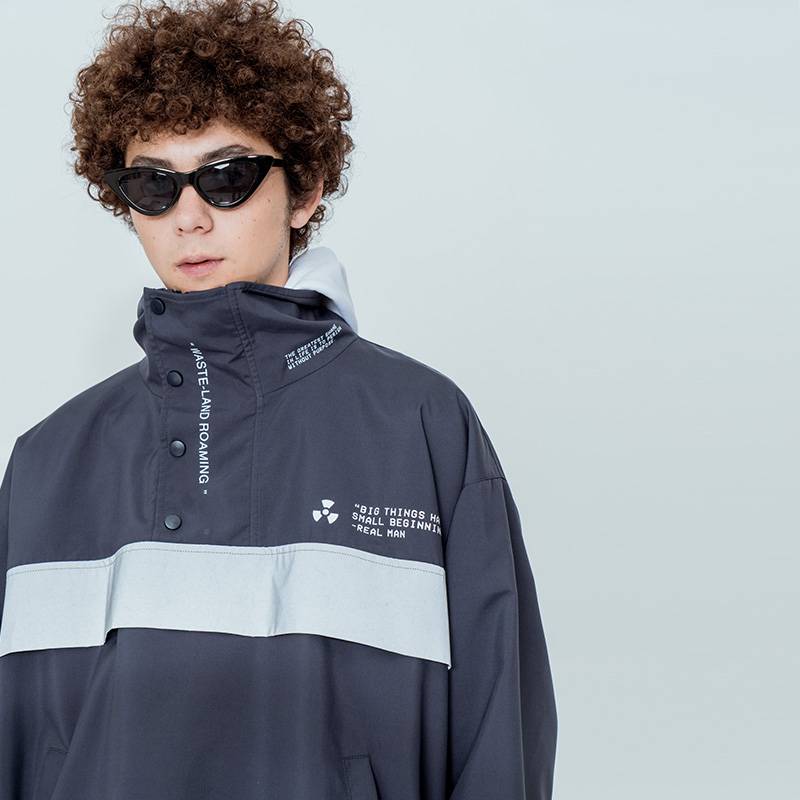 GEOMETRY日系潮牌背面印花3M拼接套头夹克男装宽松嘻哈秋季薄外套