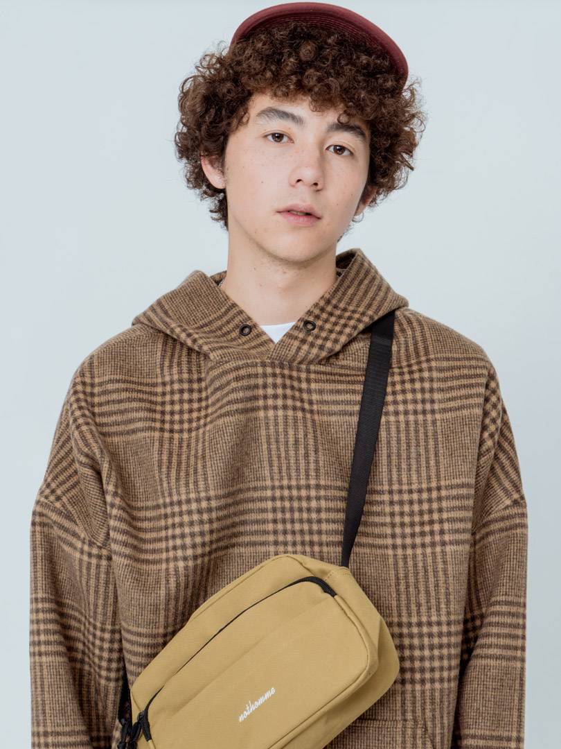 GEOMETRY日系潮牌50%羊毛呢宽松套头连帽格子厚外套男装闲休夹克