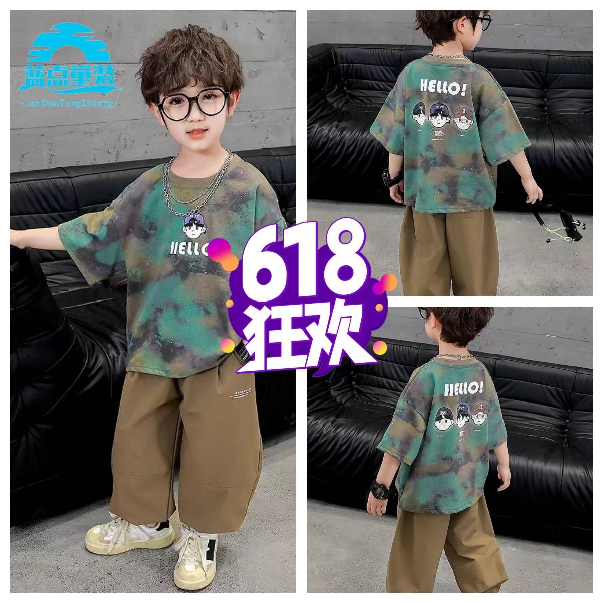 男童短袖T恤2024新款夏季儿童纯棉半袖上衣潮酷帅气T