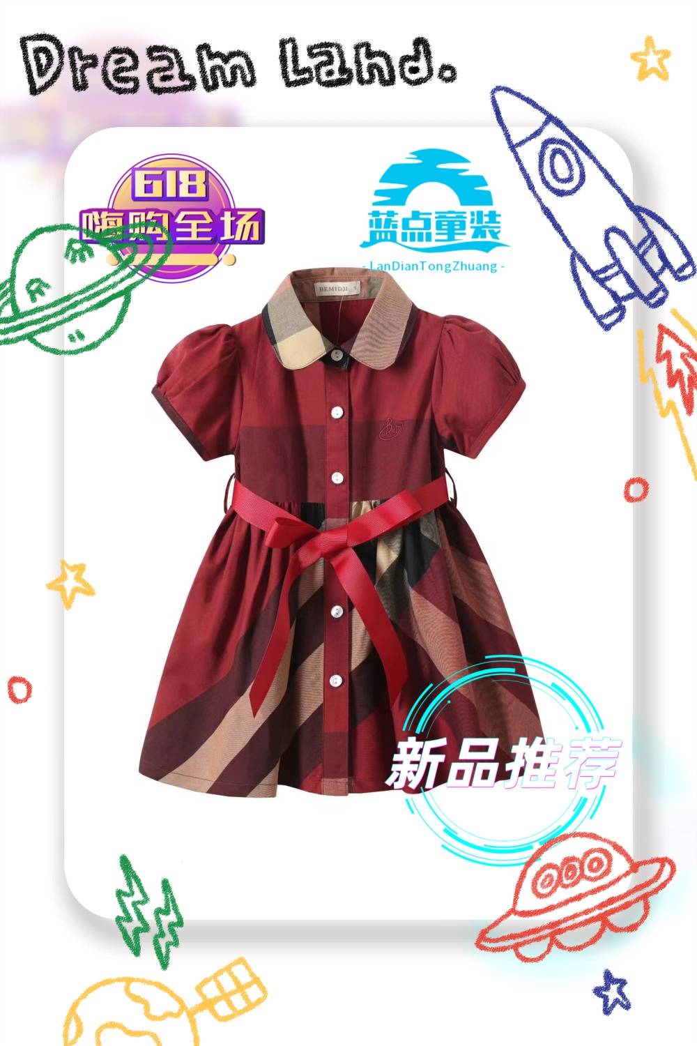 女童纯棉连衣裙夏装英伦风格公主裙格子裙洋气宝宝衬衫裙
