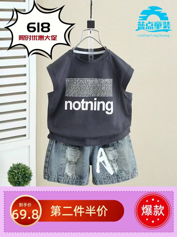 男童夏装背心套装2024新款宝宝夏款无袖衣服酷帅气