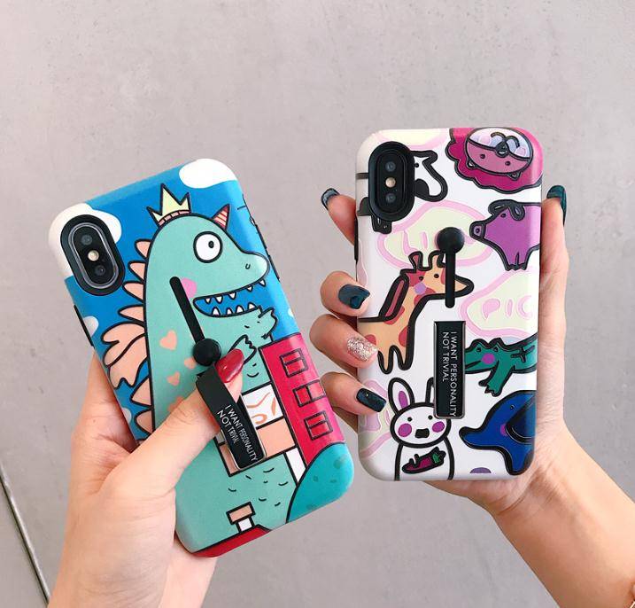 恐龙动物园指环支架苹果6S 7 8PLUS手机壳iphoneXS Max XR卡通壳