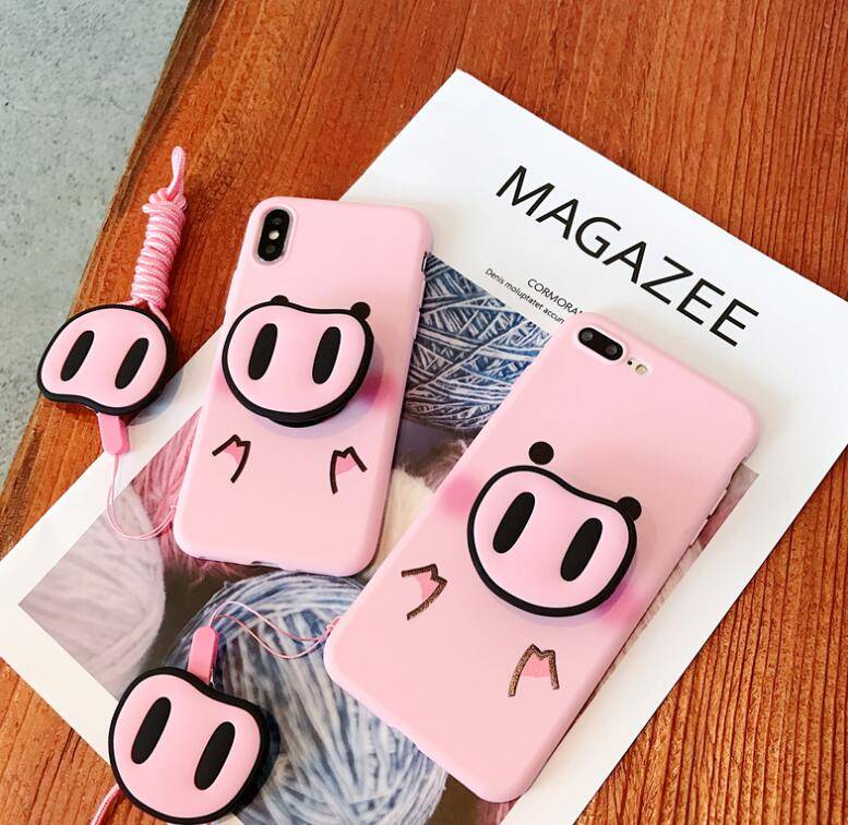 粉嫩卡通猪气囊支架苹果X 6sp手机壳iphone8 7plus全包硅胶挂绳壳