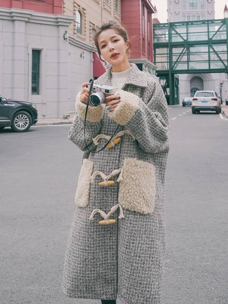 【盛宏】M家经典大衣双面羊绒大衣毛呢外套女水波纹羊绒大衣7202