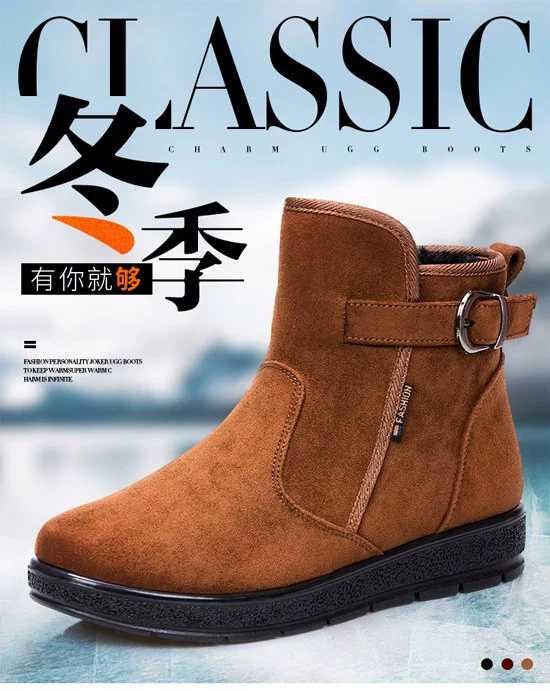 2018年新款小白鸽鞋业保暖加绒防滑雪地靴江浙沪包邮美观纯色时尚