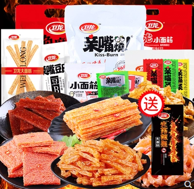 卫龙辣条大礼包亲嘴烧麻辣儿时怀旧零食网红混搭混合装一箱整箱