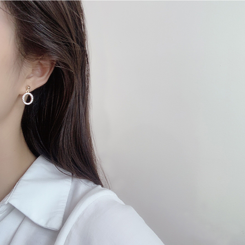 韩国纯银耳钉女气质百搭圆圈高级感网红耳坠耳饰耳环2019新款潮