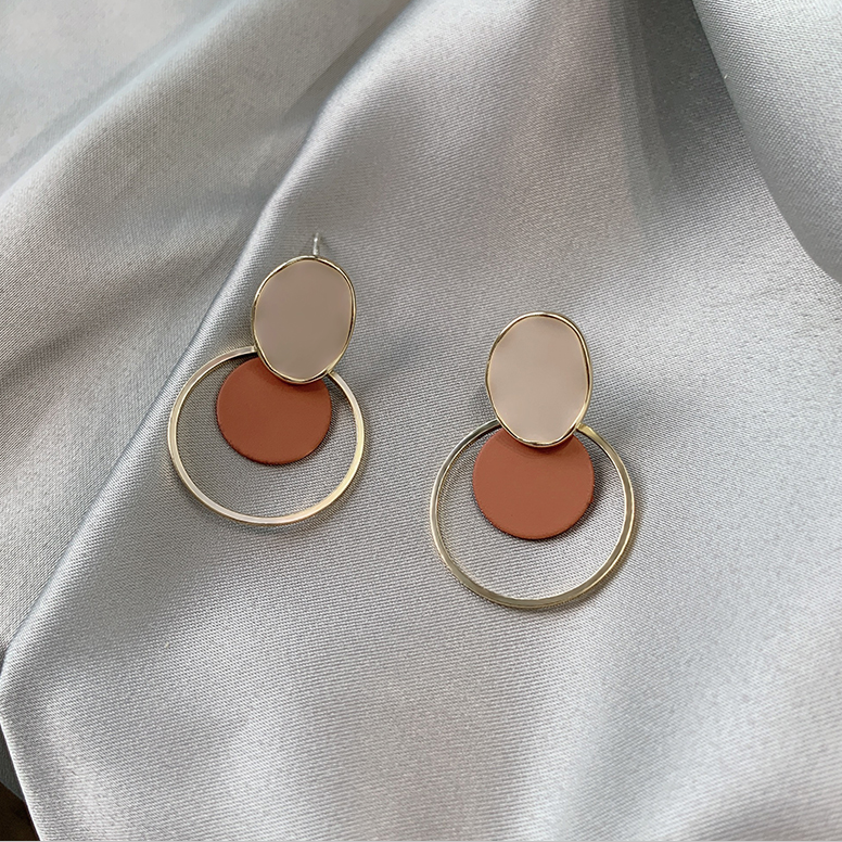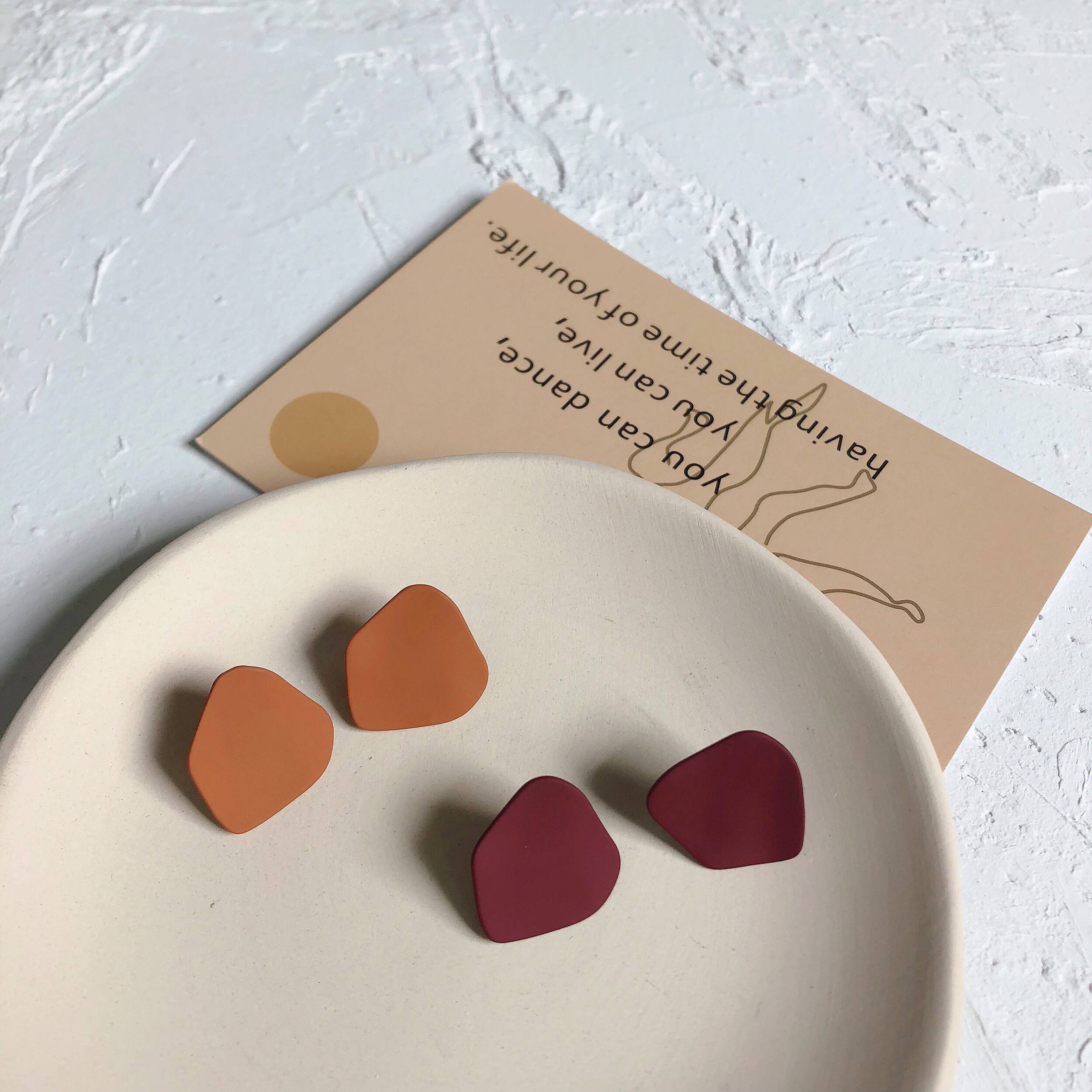 不规则艺术感。新年红复古几何哑光磨砂秋冬耳钉脏橘色简约耳饰