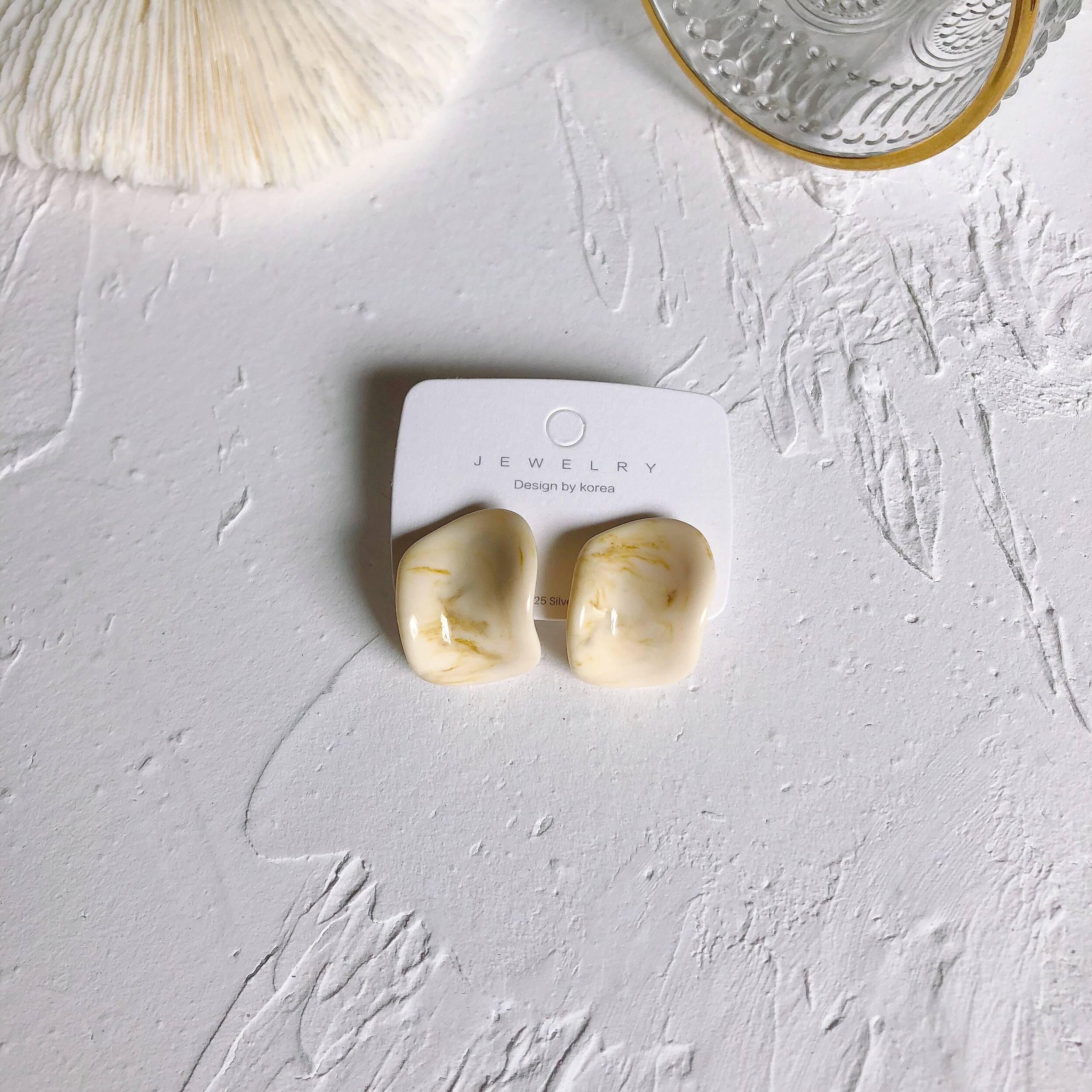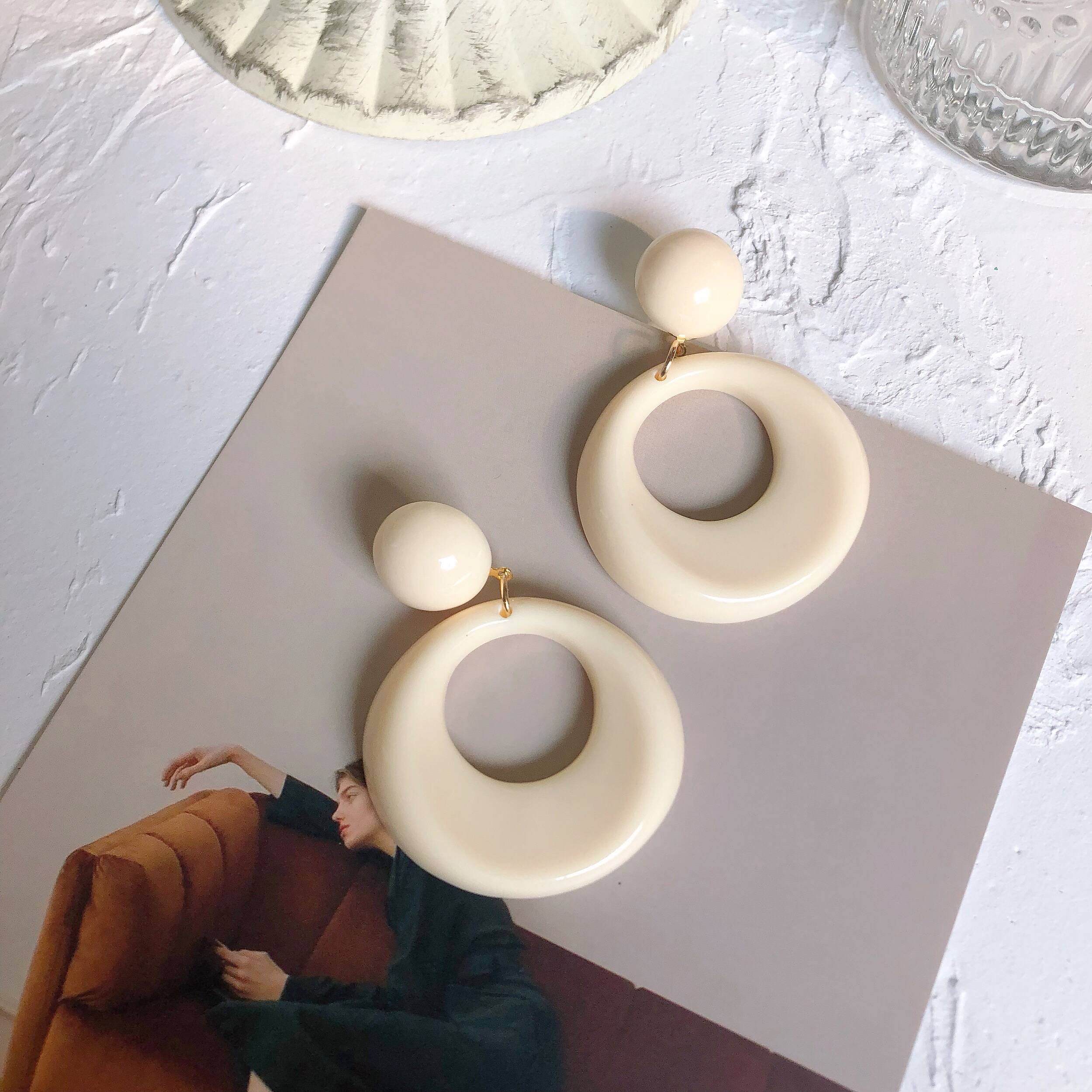 大酒窝明明同款 小众几何圆环亚克力奶白耳环vintage树脂耳钉耳夹