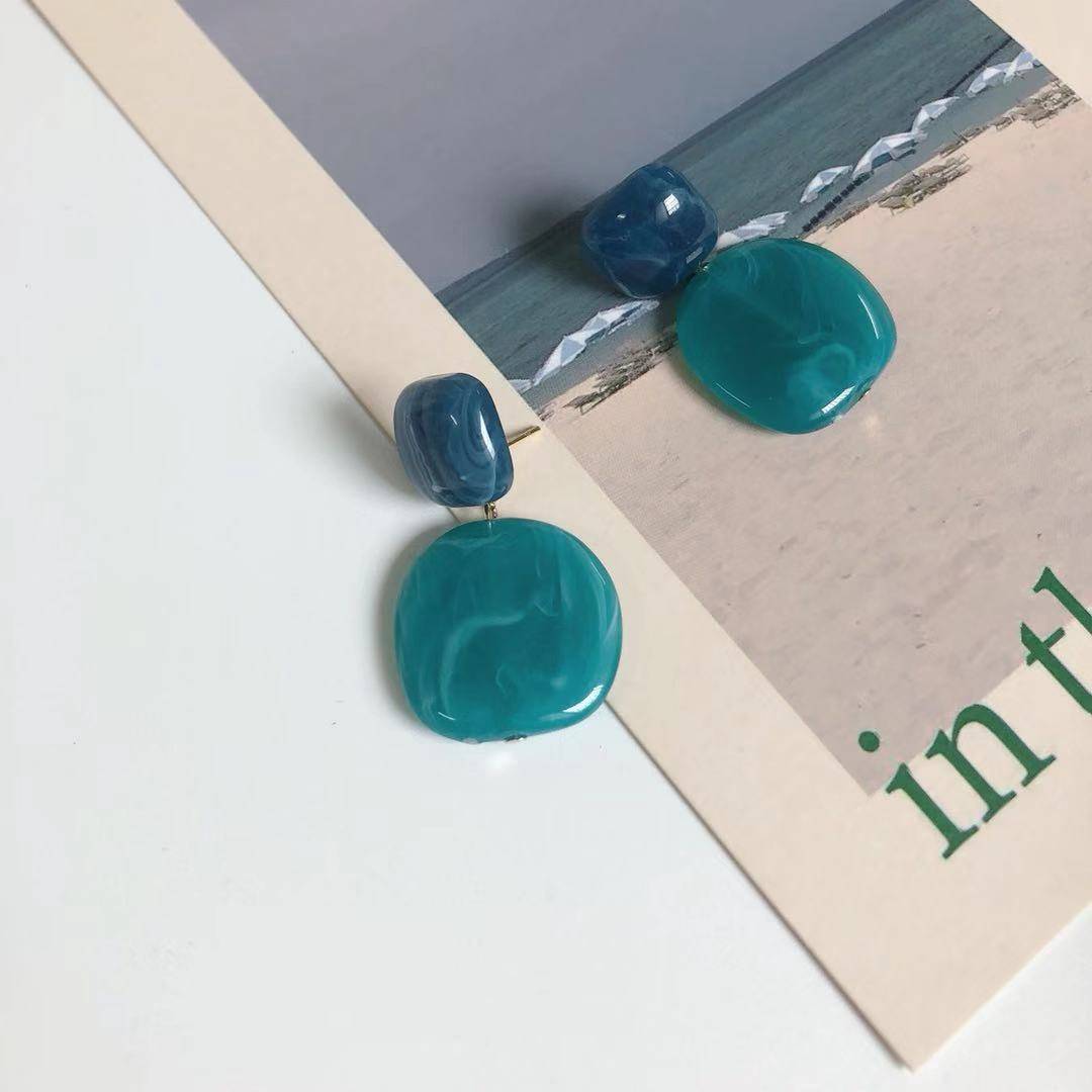深海少女蓝 几何方形醋酸耳环ins风深邃蓝耳钉韩国简约复古耳饰女
