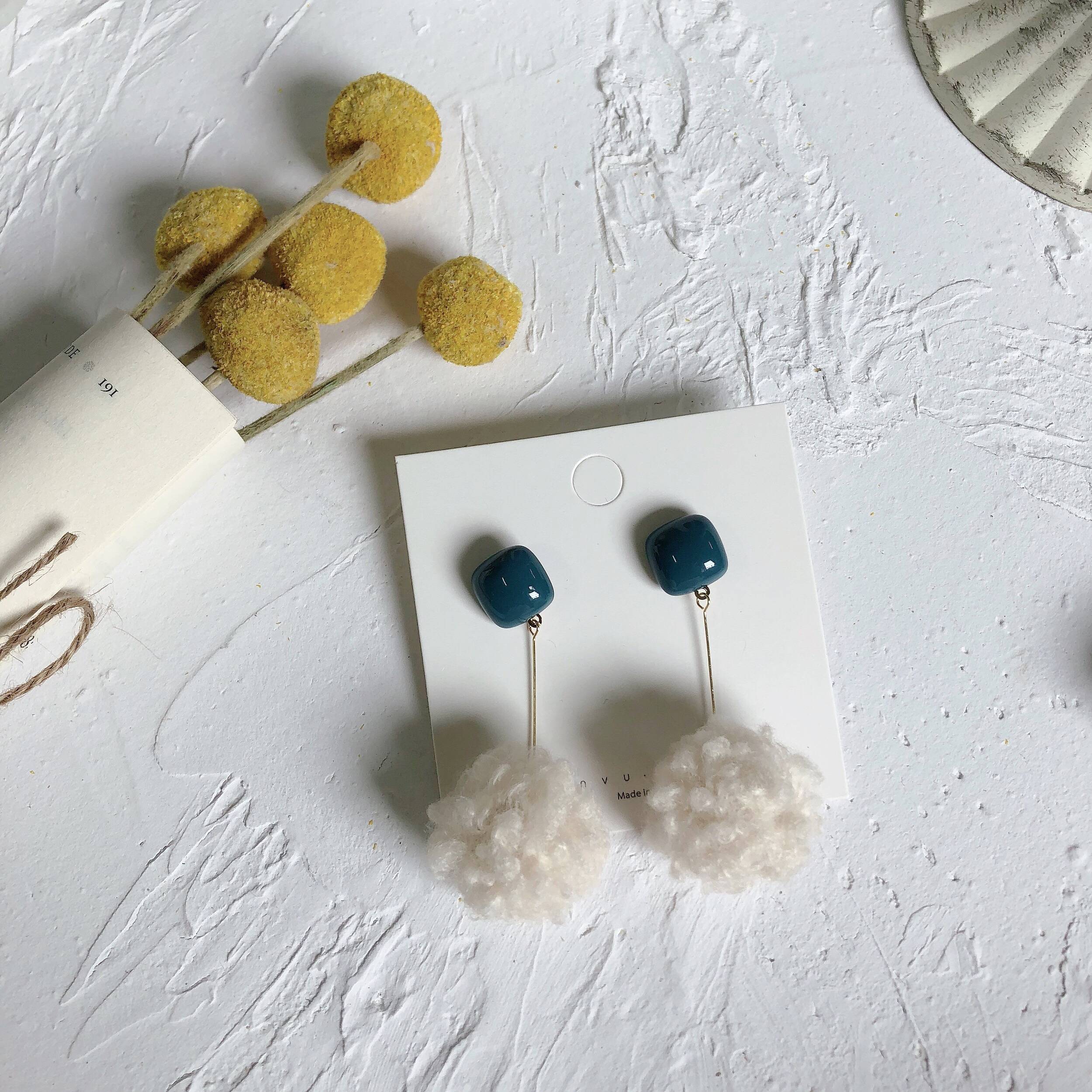 韩国温暖卷毛气质撞色毛球耳环长款仿羊羔毛圆球秋冬原创新款耳饰