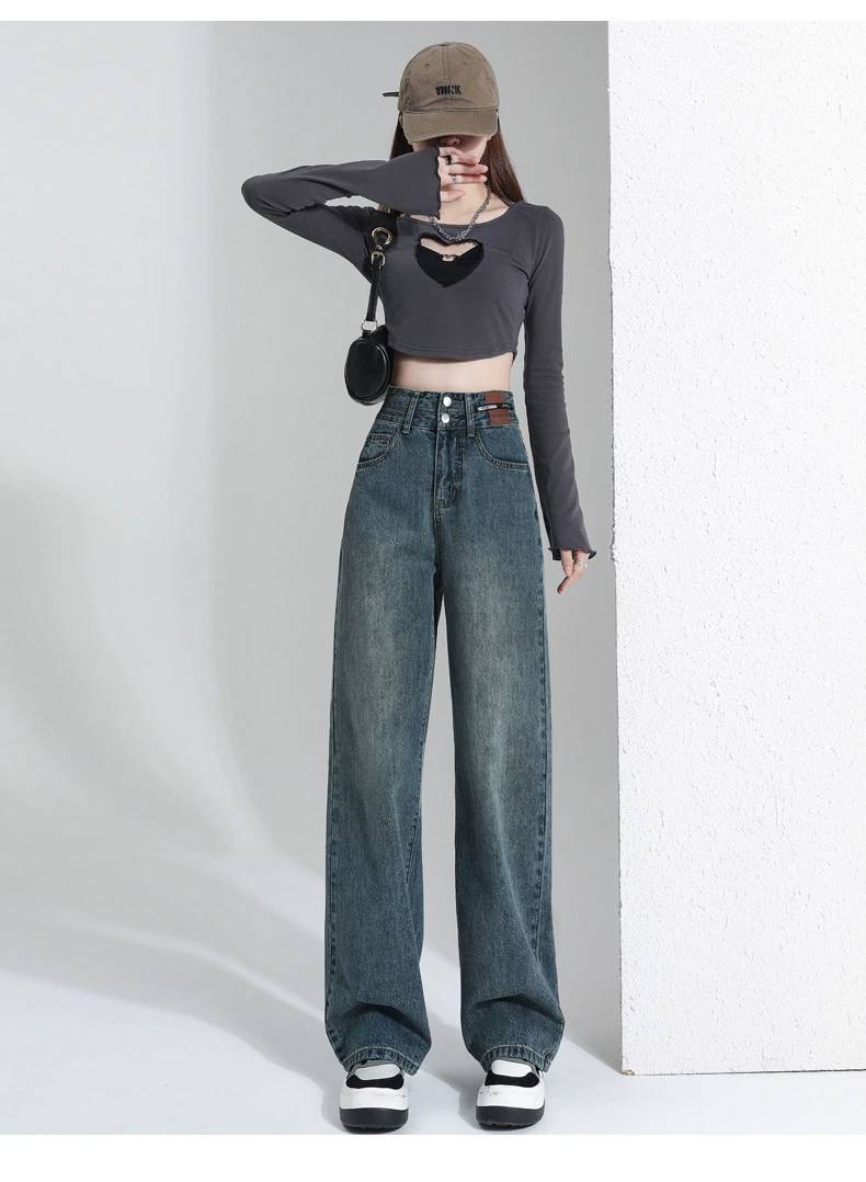 加绒直筒阔腿牛仔裤女春秋季2024新款爆款小个子高腰宽松裤子冬季
