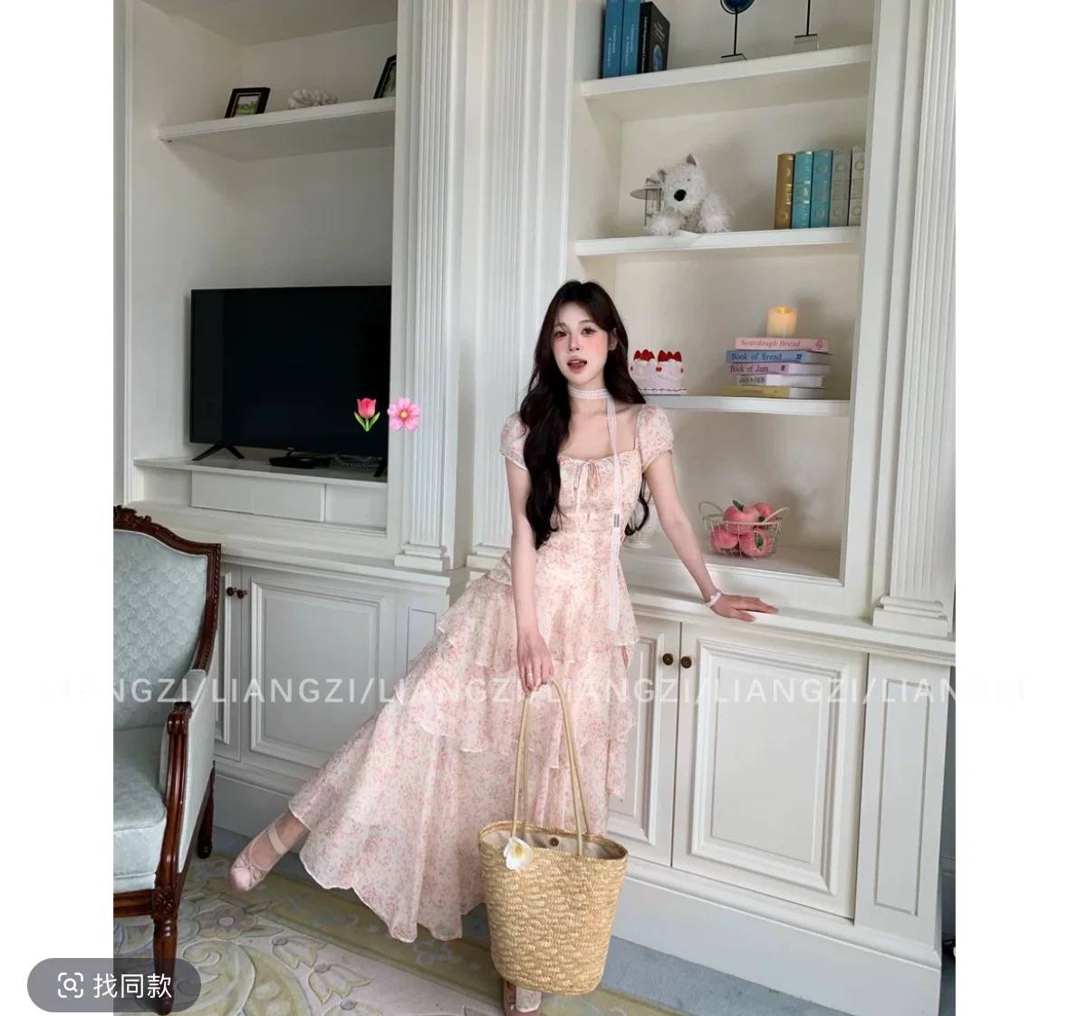 法式浪漫夏日绝美连衣裙女夏季2025新款高级感收腰显瘦长裙