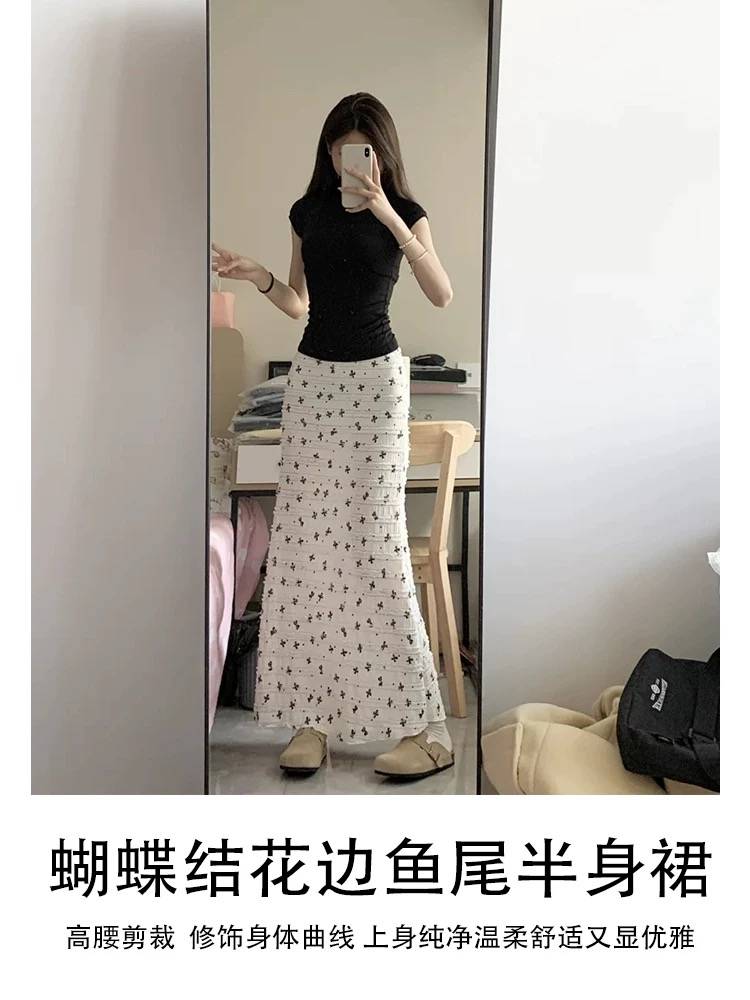 开春白色碎花鱼尾半身裙女夏日绝美2025新款长款包臀长裙子穿搭夏