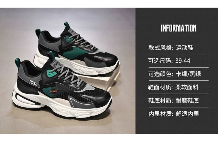 秋季男鞋新款透气网面男士运动鞋子男潮流百搭厚底防滑休闲老爹鞋