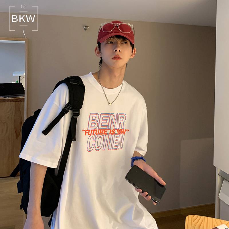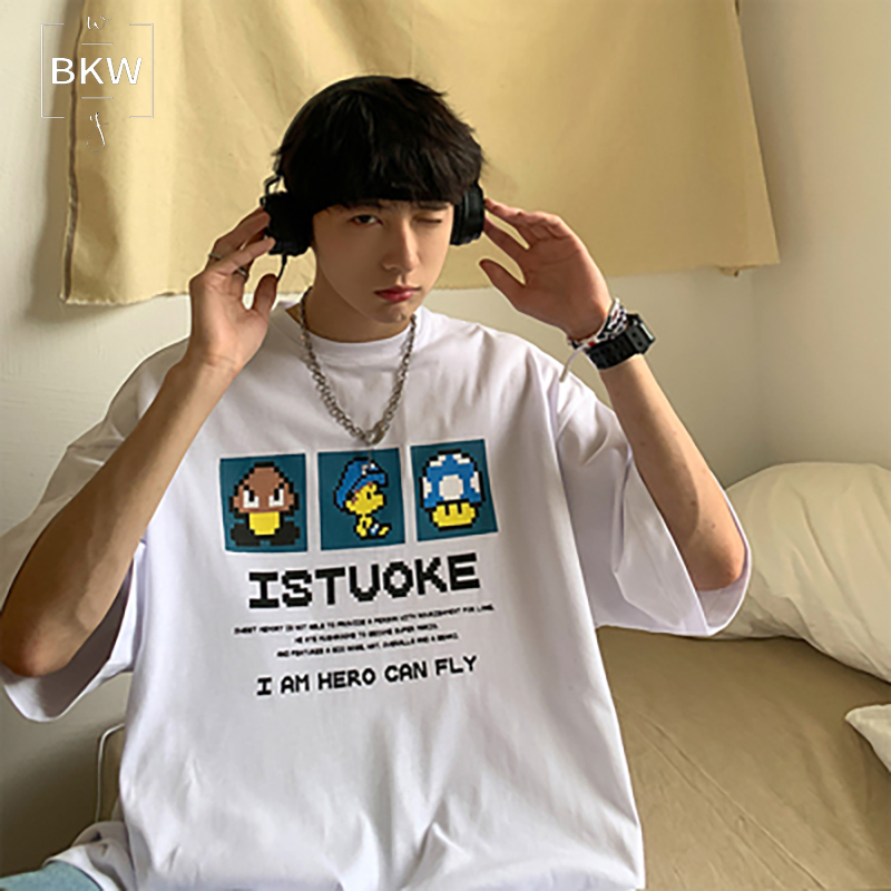 BKW男装 动漫印花短袖t恤宽松百搭上衣服港风ins潮流休闲体恤