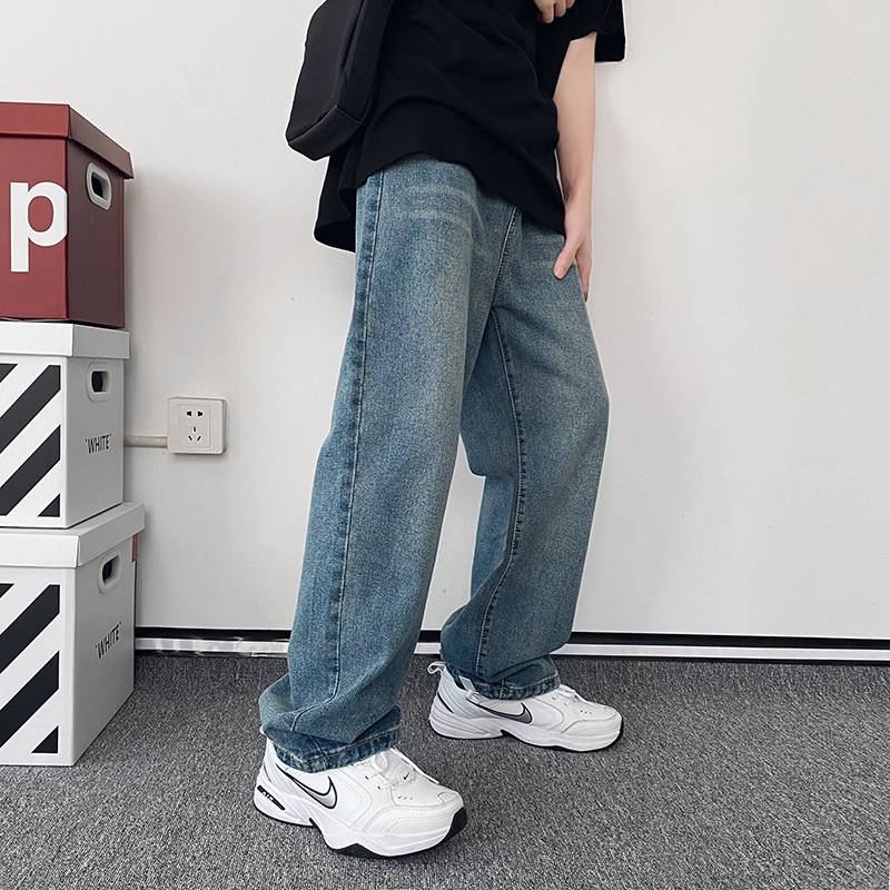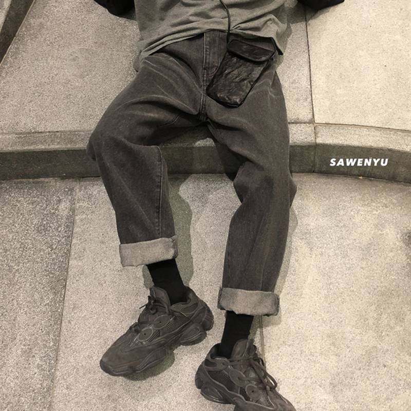 高街牛仔裤夏季直筒暗黑风宽松直筒老爹裤休闲长裤