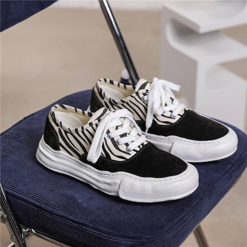 斑马纹溶解鞋男2021新款潮流网红复古百搭厚底低帮情侣休闲帆布鞋
