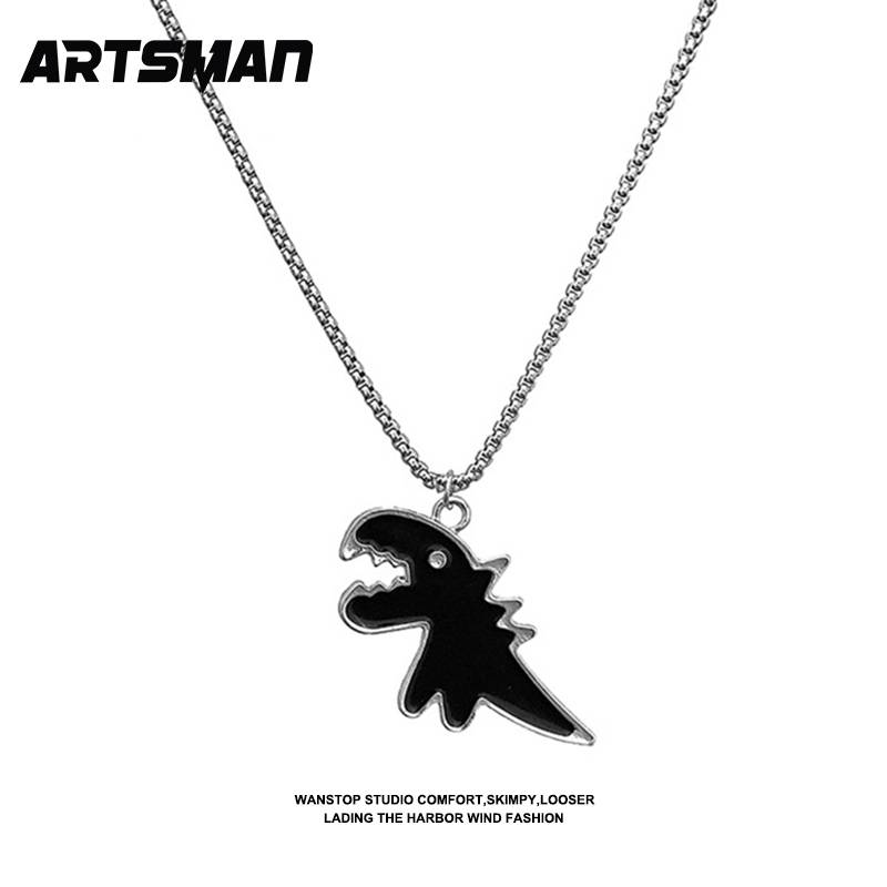 卡通恐龙钛钢项链男潮流嘻哈2021年新款复古蹦迪吊坠挂饰情侣链子