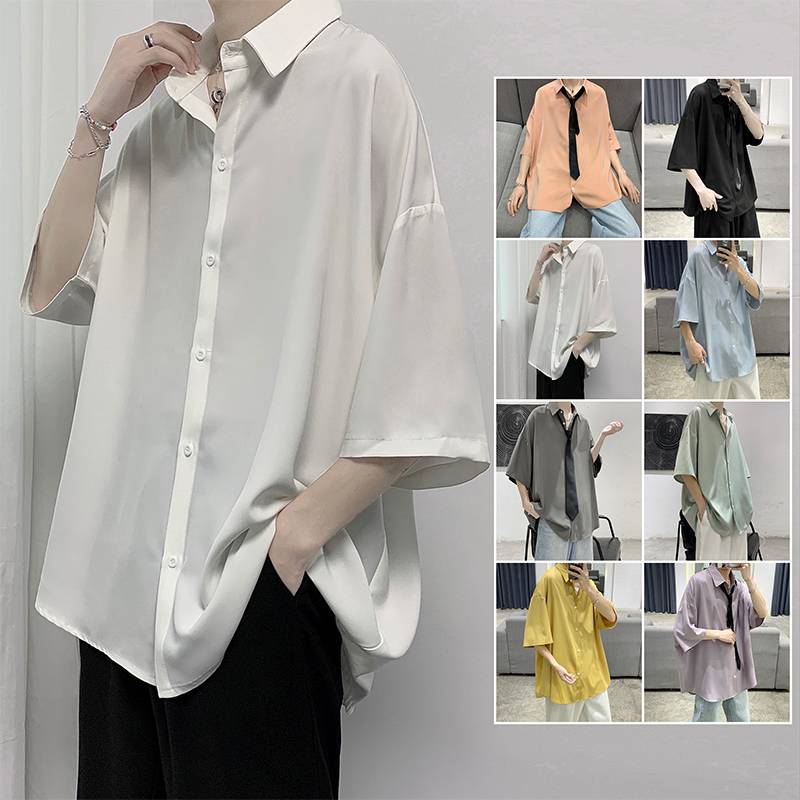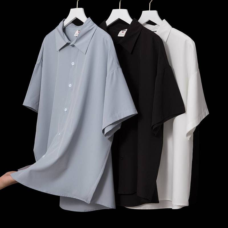 冰丝短袖衬衫夏季港风休闲百搭炸街潮流宽松衬衣外套
