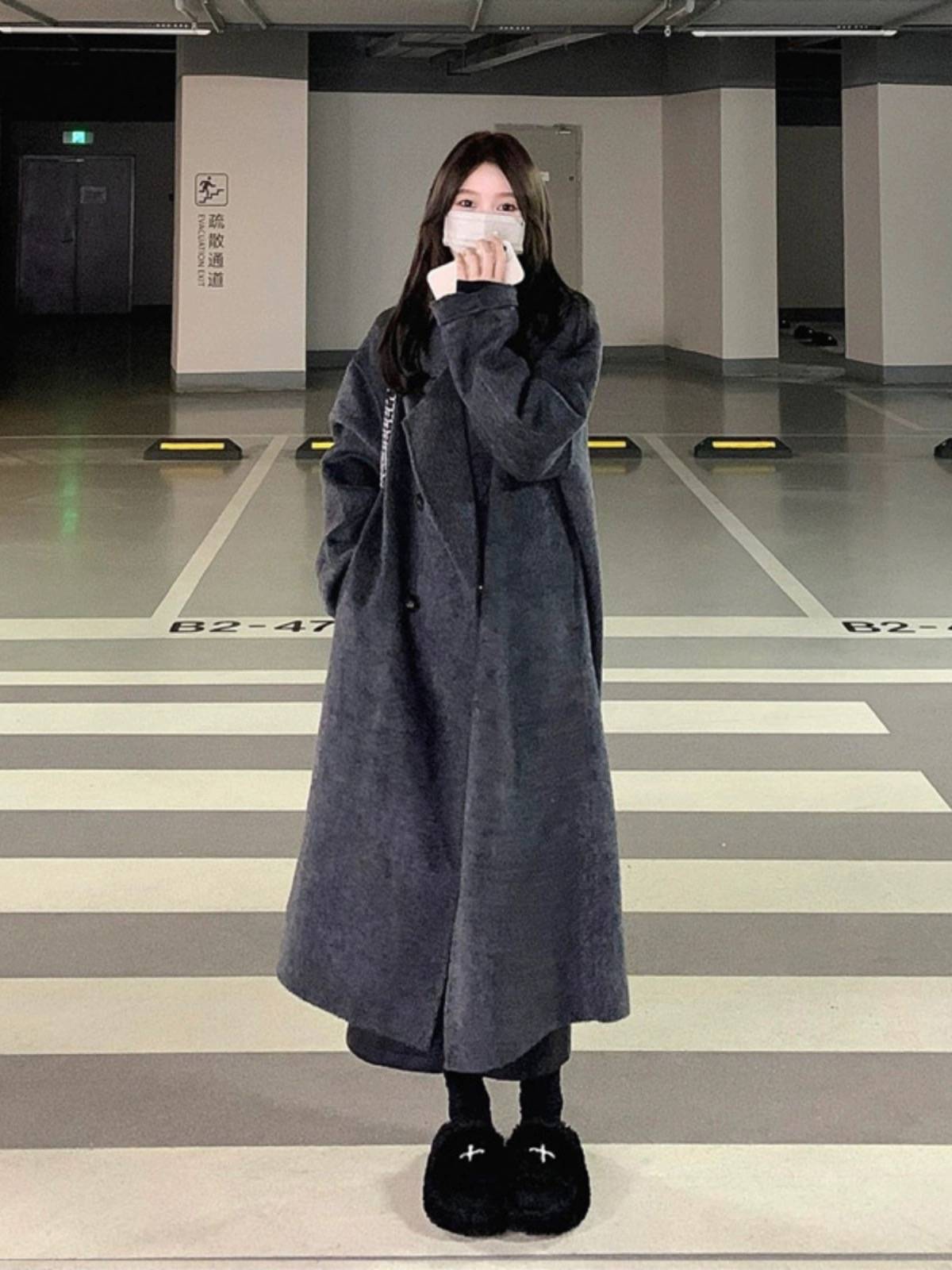 灰色长款呢子大衣女2024秋冬季新款毛呢外套高级感小个子加厚气质