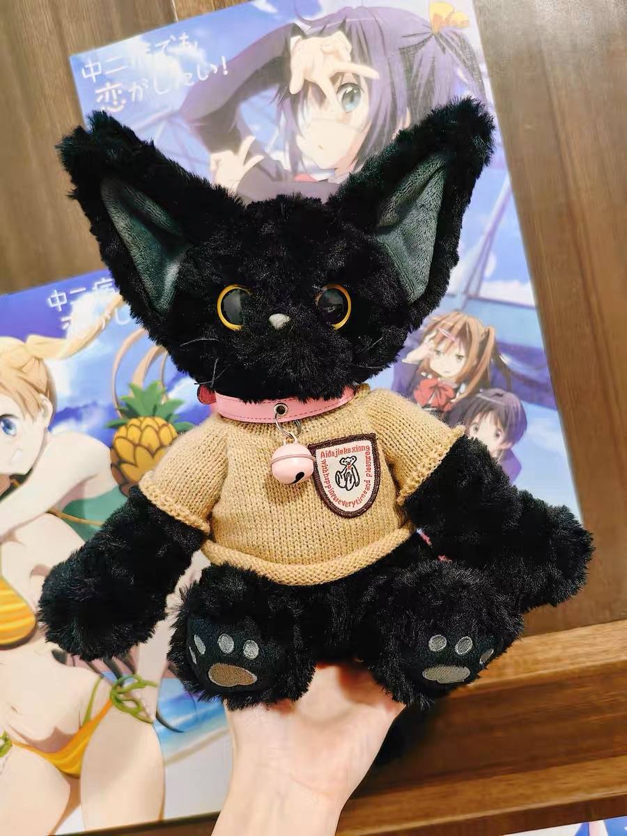 2023新款可爱猫咪公仔卡奇德文卷毛黑猫玩偶公仔网红玩具生日礼物