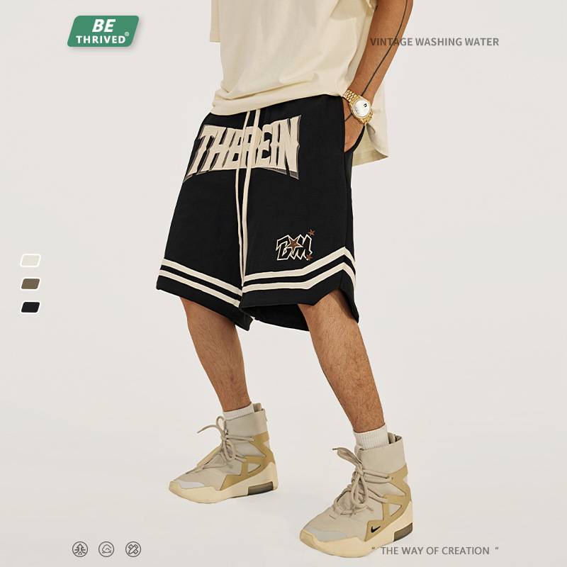 2023夏季重磅美式重工刺绣篮球裤宽松休闲开叉运动五分裤