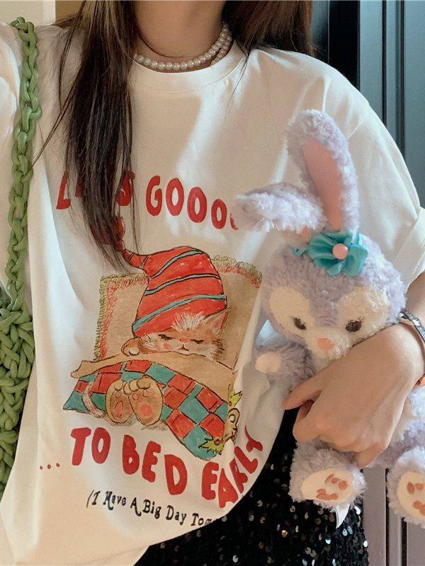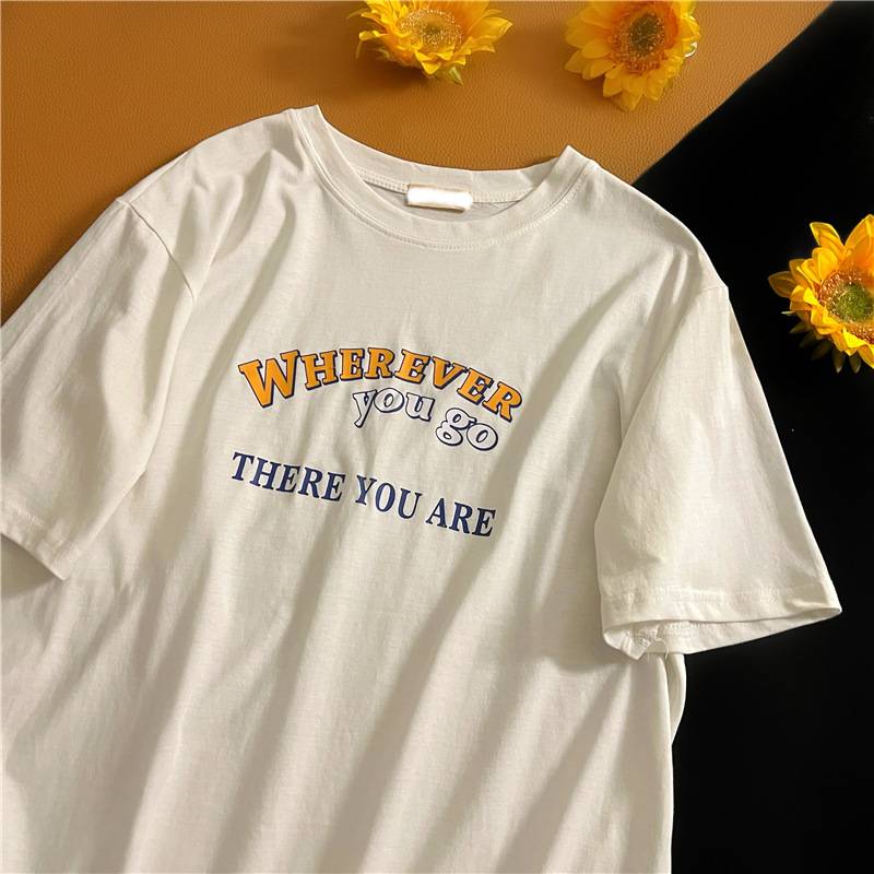 2023夏季韩版新款学生宽松圆领印花短袖T恤女小个子百搭显瘦上衣