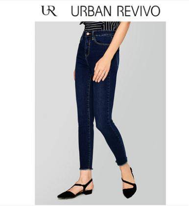 UR2018春夏新款女装修身磨白洗水丹宁休闲牛仔裤WG04SBKN2002