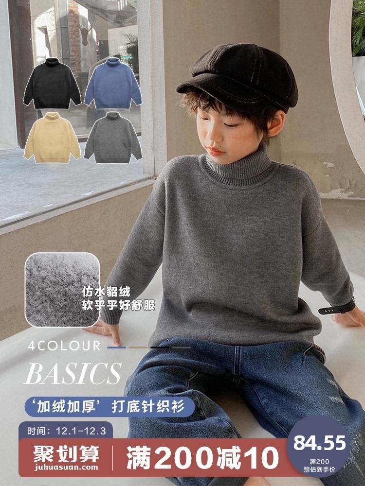 祯品轩水貂绒男童毛衣2022年新款加厚针织衫儿童高领冬款打底毛衫