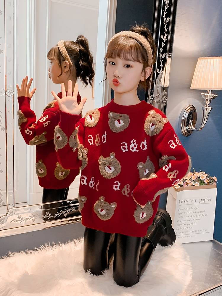 女童毛衣秋冬装2022新款儿童秋装加绒加厚打底衫女孩冬款洋气上衣