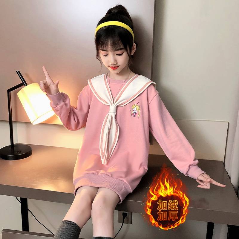 女童加绒卫衣春秋冬装2022新款儿童中长款上衣中大童女孩洋气秋款