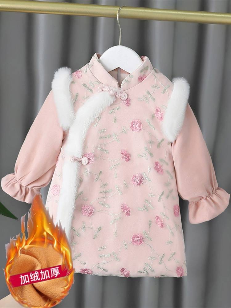 女宝宝旗袍裙婴幼儿小童周岁生日拜年礼服2中国风3冬装加绒连衣裙