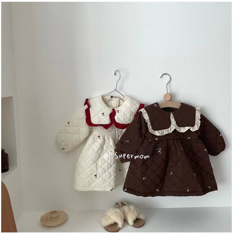 小朋友的秘密家2022冬季新款女童韩版翻领连衣裙刺绣樱桃夹棉保暖公主裙