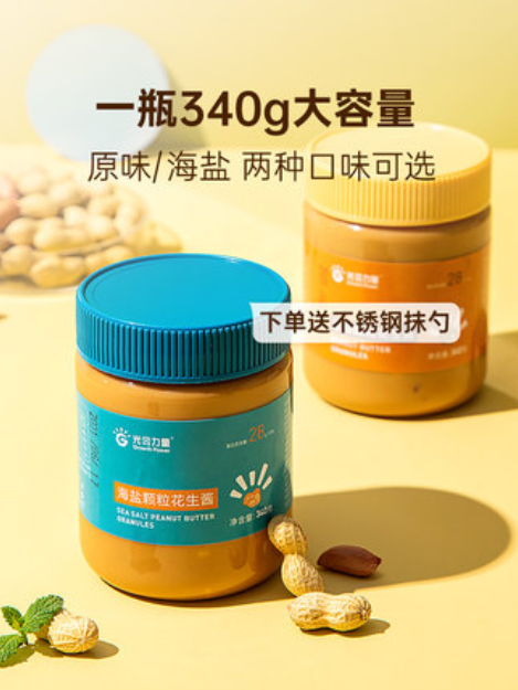 嘎嘎减脂健身纯花生酱芝麻酱减低0非无糖卡脂肪三明治面包酱海盐颗粒酱料