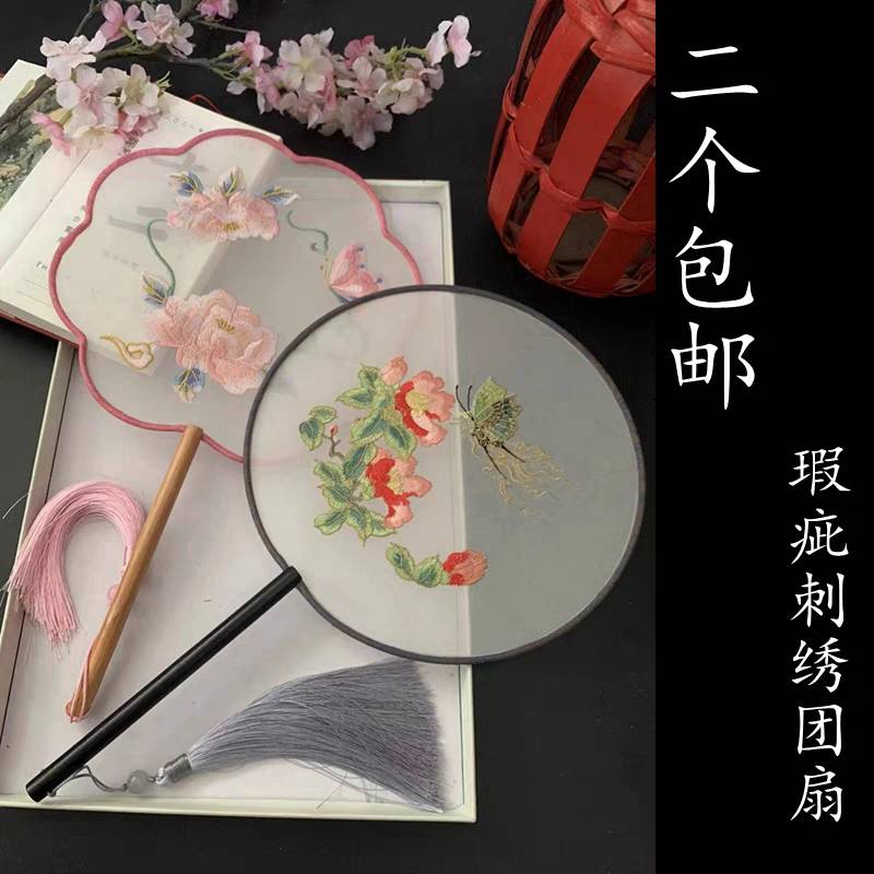 手工双面苏绣扇子刺绣宫扇中国风古风女绣花团扇 80.00 已售:0件