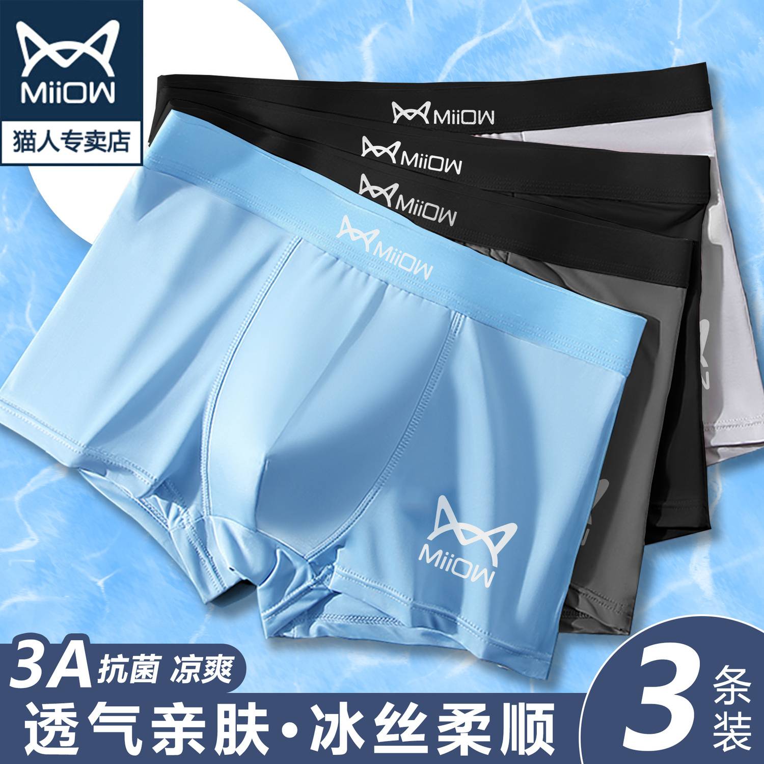 猫人男士冰丝内裤男平角裤男生薄款夏季学生青年底裤四角裤头短裤