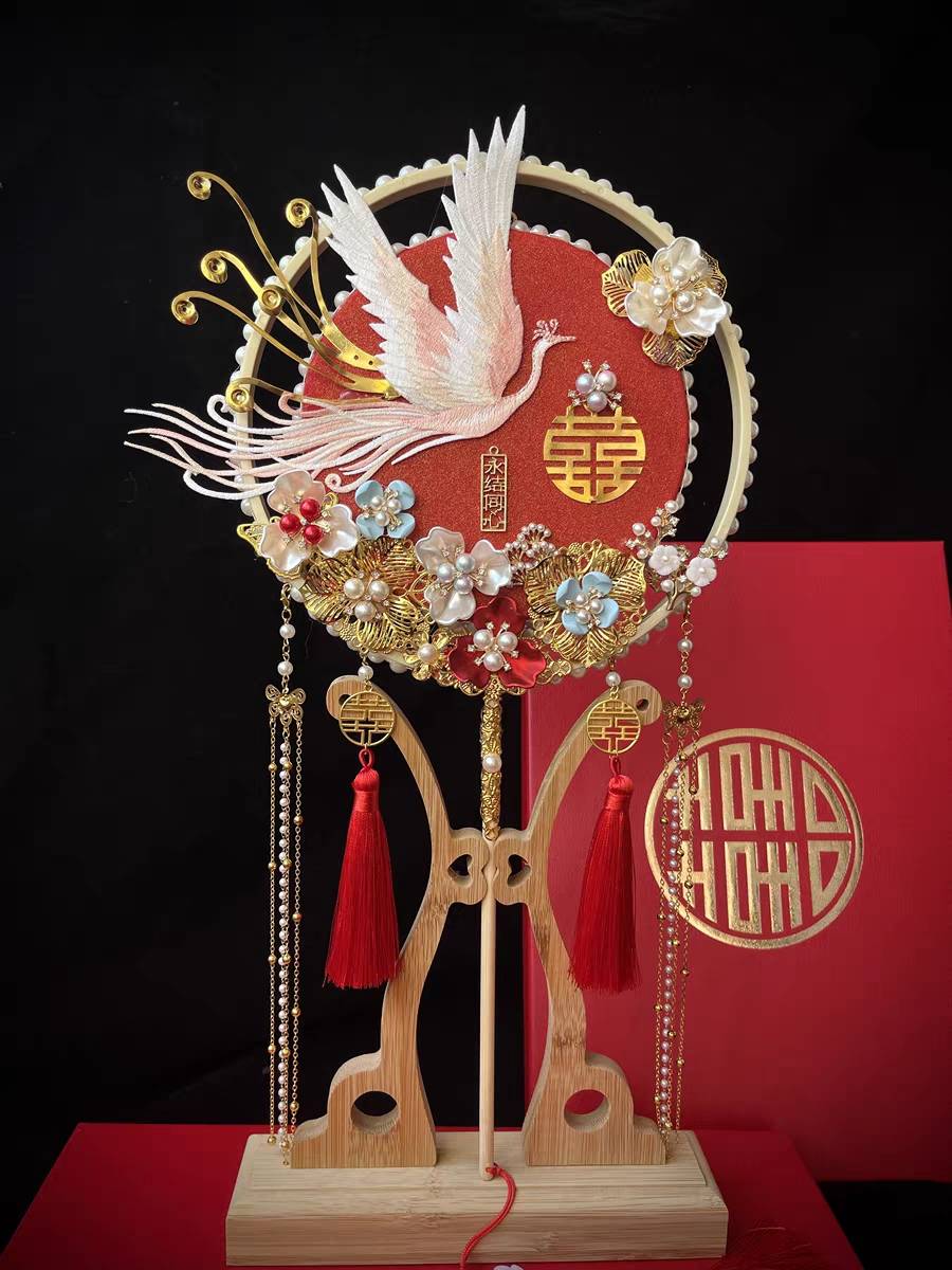 团扇结婚新娘diy材料包秀禾团扇红色中式出嫁高级重工成品喜扇 800.00 已售:0件